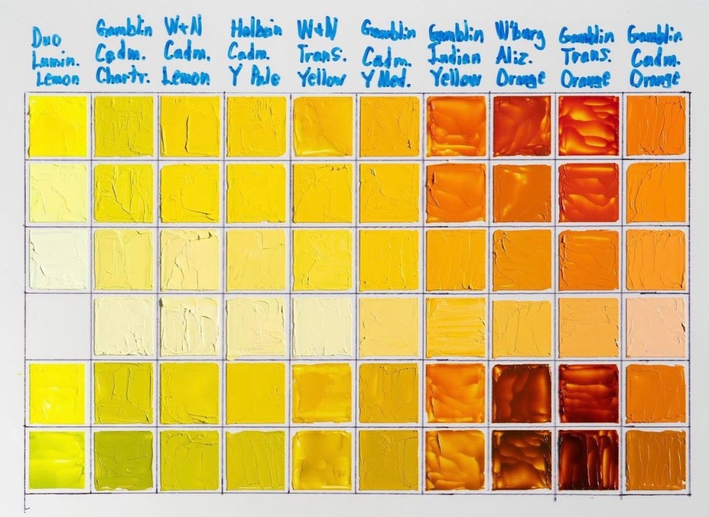Experimentation is a major part of my practice. The studio is littered with test panels, test patches of oils/watercolors on Yupo (synthetic paper), test patches of pigments on Dura-Lar (a clear film), test patches of textured paint on Dura-Lar, sheets of Dura-Lar with repetitive lines like those seen in my work, and RendR sketchbooks with color pairings. Notice I said Dura-Lar a lot. It’s amazing.