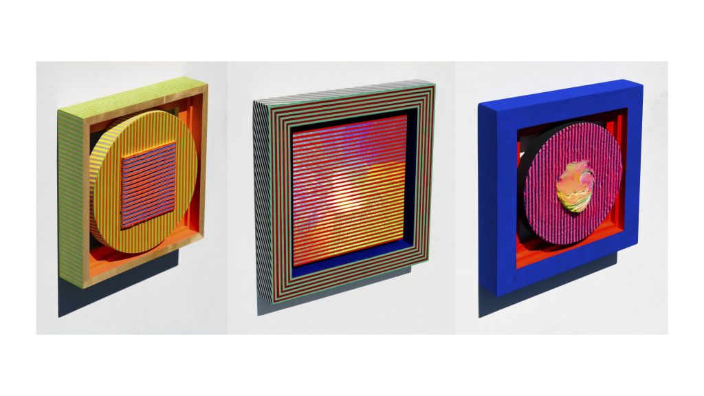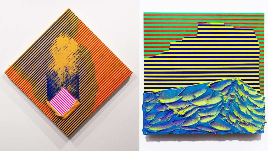 Armstrong uses technology, colors, layers and experimental mediums to create paintings that stimulate an intense and immersive experience for the viewer. His geometric, textured and dense surfaces come together to create a sense of ‘visual explosion’.