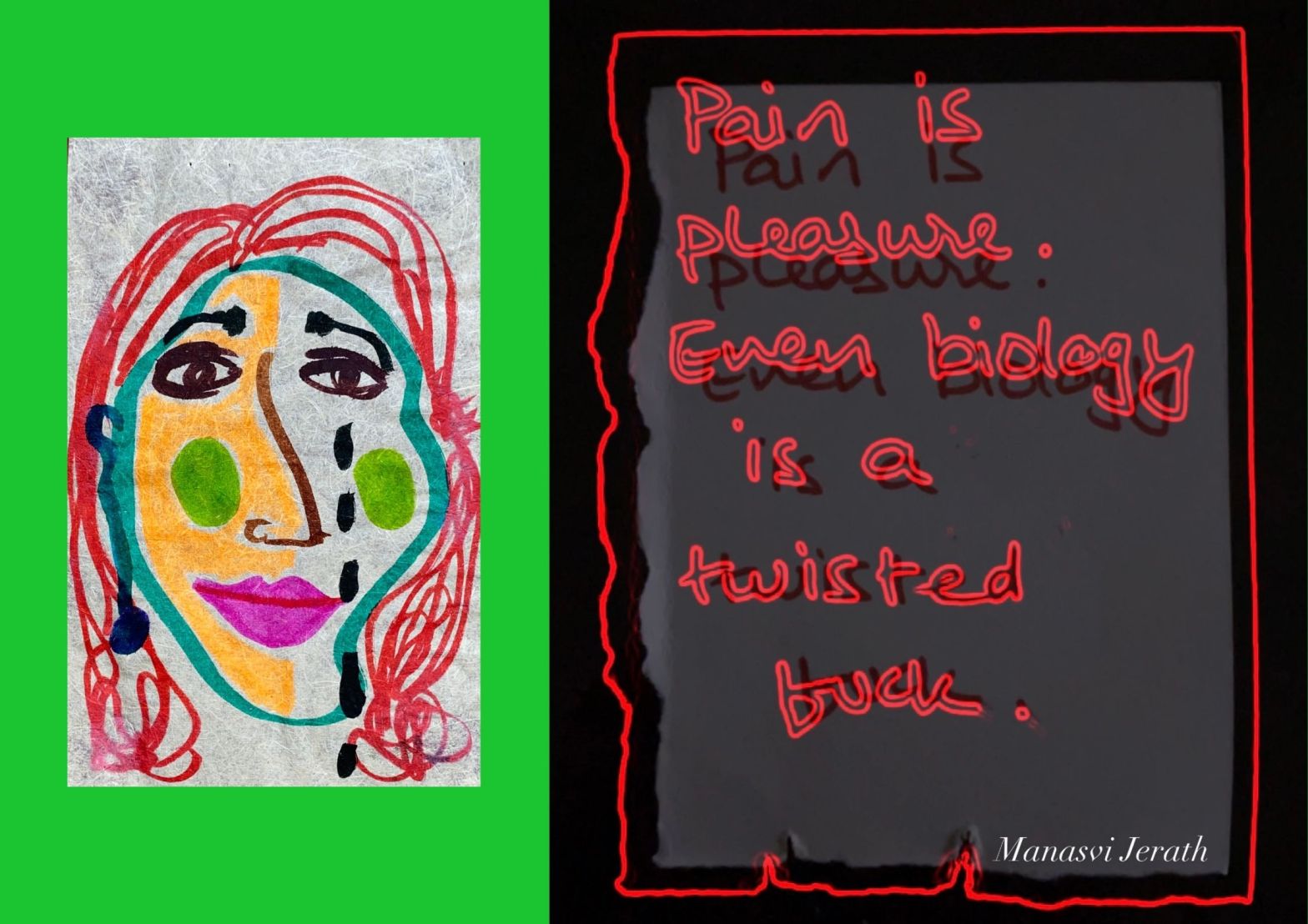 Being in love brings out the good and the bad in both lovers. In the most silent hour of the day, there is reflection. The following are little notes and portraits on paper that I digitally combined.