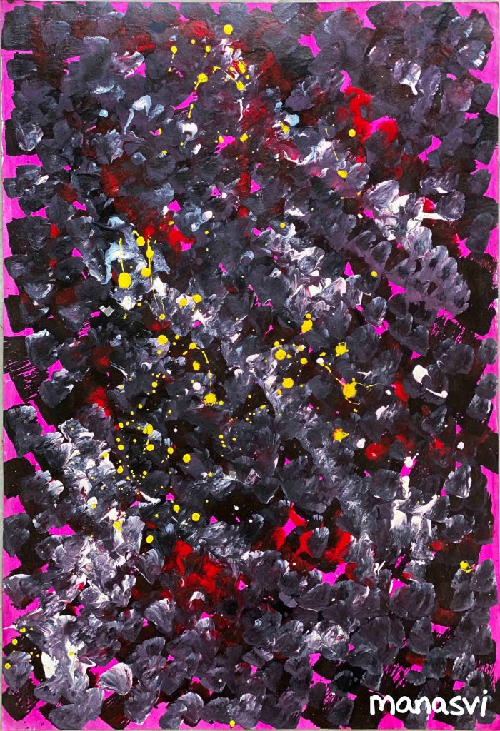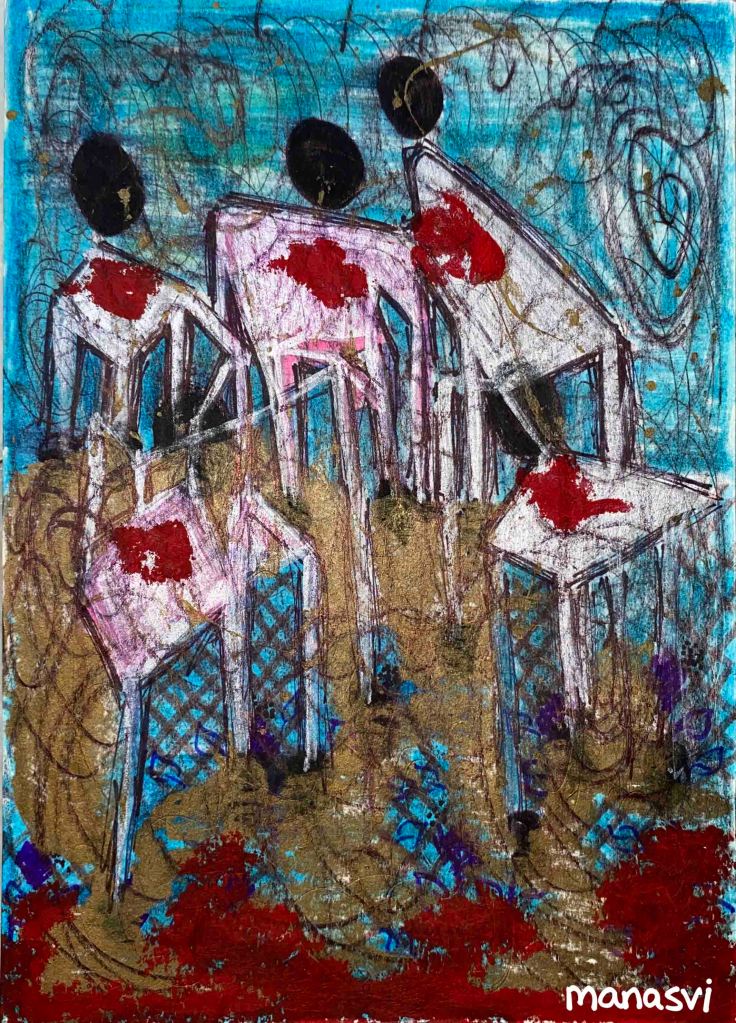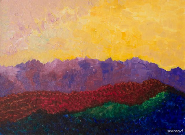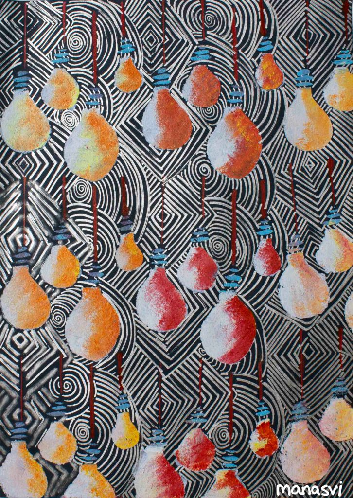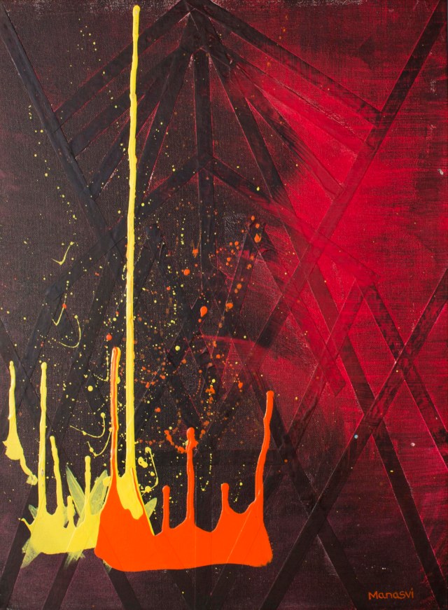 Painting 2010-2018 Tattva, mixed media on canvas board, 18 x 24 inches Arise, mixed media on canvas board, 18 x 24 inches (pre-framed) Lighthouse, mixed media on canvas board, 18 x 24 inches Manoeuvre Meadow, acrylic on canvas board, 24 x 18 inches Oscillate, acrylic on canvas board, 24 x 24 inches Break Up, acrylic and oil based pen on canvas board Birth, acrylic on canvas board, 18 x 24 inches Outlandish, acrylic on canvas board, 22 x 15 inches Progress of Mankind, ink on premium paper, 22 x 14 inches (pre-framed) In the Woods, acrylic on canvas board, 18 x 24 inches Earth, acrylic and gold powder on canvas board 18 x 24 inches, Stormy, acrylic on paper, 16 x 24 inches Milky Way, acrylic on paper, 8 x 11 inches Scrambled Eggs, acrylic on paper, 16 x 24 inches Yellow Angels, acrylic on premium paper, 16 x 24 inches Divinity, acrylic and charcoal on premium paper, 12 x 16.5 Inches Delhi Slums, Acrylic on canvas board, 18 x 24 inches Crescent Night, acrylic on premium paper, 12.5 x 14.5 inches High Tea, oils and acrylic on canvas board, 12 x 12 inches Kerala, Acrylic on premium paper, glass frame (SOLD) Kisses, acrylic on canvas board, 18 x 24 inches (pre-framed) Lunar, acrylic on canvas board, 18 x 24 inches (pre-framed) Tribe and Terror, acrylic on canvas board, 24 x 18 inches Meditation, acrylic on canvas board, 18 x 24 inches Kintsugi, acrylic on canvas board, 20 x 16 inches Sati, mixed media on canvas board, 18 x 24 inches A Breath Untaken, acrylic on canvas board, 18 x 24 inches (pre-framed) Jaisalmer, acrylic on canvas board, 18 x 24 inchesSOLD) Light Up, acrylic and painty on premium paper, 11.7 x 16.5 inches. Peacock, Acrylic on handmade paper, 12 x 16.8 inches Sea World, acrylic on paper, 8 x 12 inches Modern Horror, Oil paints, oil-based marker, sketch pens on premium paper, 6 x 8.5 inches Fire, acrylic on paper, 16 x 24 inches Mother & Son, acrylic, pastel, painty on premium paper 8 x 11 inches
