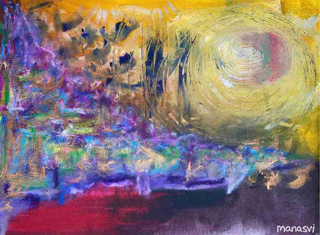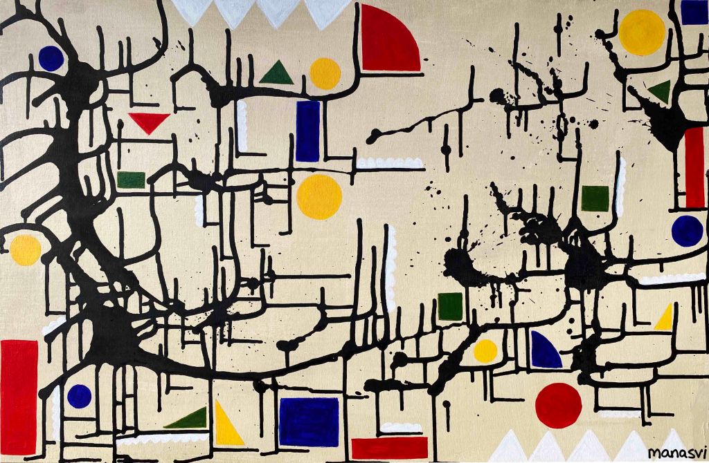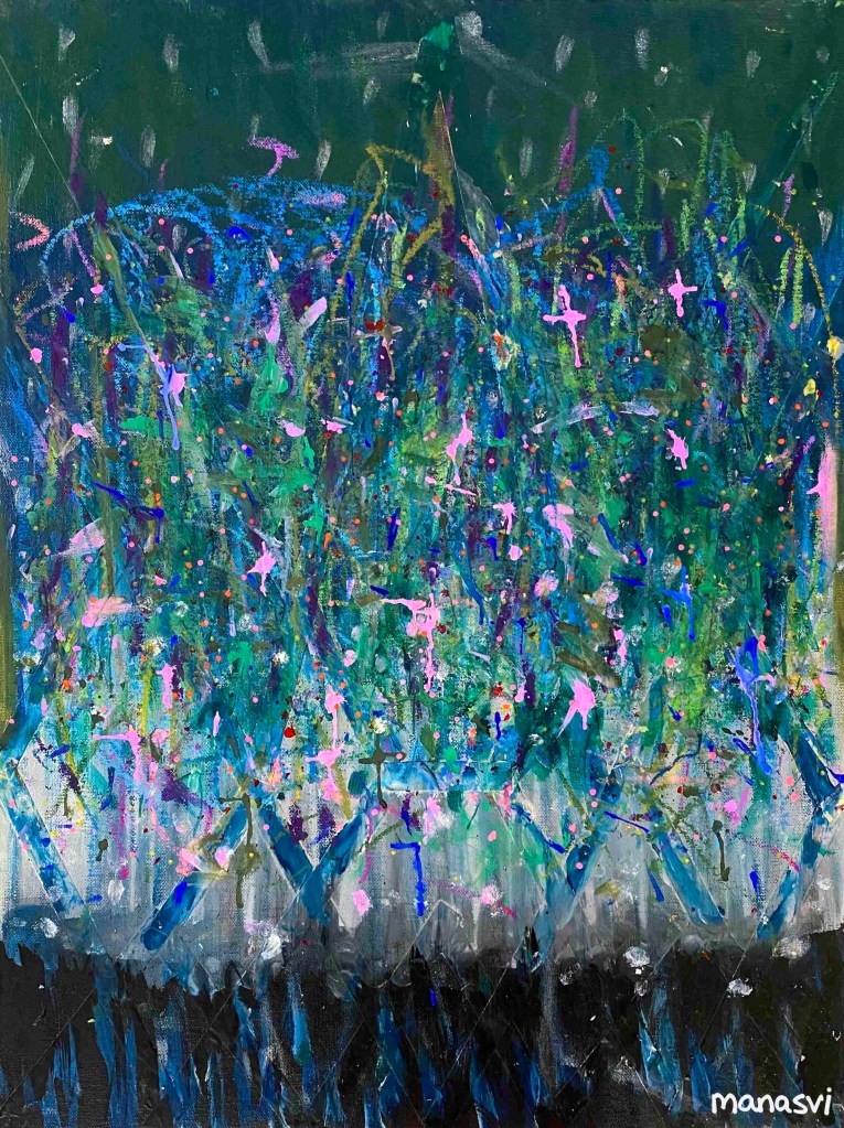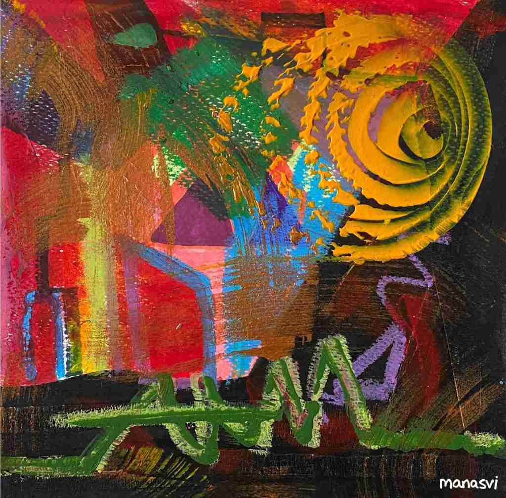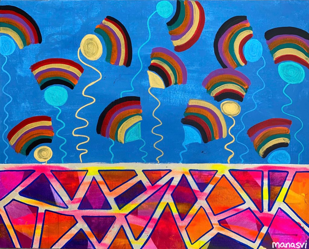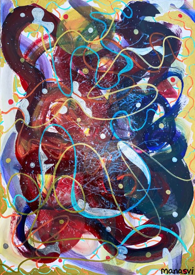 Painting Heera Addition 1.0, mixed media on canvas board, 24 x 20 inches, 2021 Spirit, mixed media on canvas board, 18 x 24 inches, 2021 Spirited Away, acrylic paint on canvas board, 18 x 24 inches, 2021 You Are The Light You Seek, acrylics, oils and posca on cotton paper, 7.8 x 7.8 inches, 2021 The Wave Of The Land, acrylics, posca on canvas board, 34 x 36 inches, 2021 Kalash, acrylics and posca on canvas roll, 12 x 16 inches, 2021 Confetti, acrylics and posca on cotton paper, 7.8 x 7.8 inches, 2021 Sapphire & Amber, Acrylic on ivory paper, 8.5 x 11 inches, 2021 The Call, acrylics, mixed media on cotton paper, 7.8 x 7.8 inches, 2021 The Colour Of Courage, acrylic and oil pastel on cotton paper, 7.8 x 7.8 inches, 2021 The Moment Of Death, acrylic and oil pastel on cotton paper paper, 7.8 x 7.8 inches, 2021 Bharat Mata, mixed media on wood panel, 34 x 36 inches, 2020 Indian Ink, acrylic and ink on canvas board, 24 x 36 inches, 2021 Present Tense, mixed media on wood, 24 x 36 inches, 2021 Ashes To Ashes, Pigment on canvas board, 12 x 12 inches, 2020 The Kiss, mixed media on canvas, 24x 24 inches, 2020 J.K.N.P 1, gouache paint on paper, 8 x 6 inches, 2020 Geometry of Insulation, acrylic on wooden stretched canvas, 24 x 36 inches, 2020 Mirror Mirror, acrylic on wooden stretched canvas, 20 x 24 inches, 2020 Rise and Shine, acrylic on canvas board, 24 x 36 inches, 2020 (SOLD) Tea Kettle, oil and acrylic on premium paper, 11.7 x 16.5 inches, 2020 Volume, mixed media on canvas board, 18 x 24 inches, 2020 Free Will, acrylic and posca on premium paper, 11.8 x 16.5 inches, 2020 Possibility, mixed media on wooden stretched canvas, 34 x 36 inches, 2021 The Only Place A Spirit Can Wonder Is On Earth, acrylics and oils on canvas board, 34 x 36 inches, 2021 Untitled , mixed media on canvas board, 34 x 36 inches, 2021 Faraway Tree, posca pens and colour pencil on cotton paper, 7.8 x 7.8 inches, 2021 Bird’s Eye View, acrylics, posca and oils on canvas roll, 10 x 12 inches Unbroken, acrylics, posca and oils on canvas roll, 10 x 12 inches, 2021 Between Serenity & The Past, acrylics and oils on cotton paper, 7.8 x 7.8 inches, 2021 Sometimes The Sun Gets Sore, acrylics and oils on canvas roll, 12 x 16 inches, 2021 Lost And Found, oil and resin on canvas board, 34 x 36 inches, 2021 Dharti, mixed media on ivory paper, 8.5 x 11 inches, 2021 Child’s Play, acrylic on canvas board, 24 x 36 inches, 2021 Rippling, mixed media on stretched canvas, 34 x 36 inches, 2020 The Embrace, mixed media on marker paper, 11.8 x 16.5 inches, 2021 Indian ‘Culture’, mixed media on wood panel, 24 x 36 inches, 2020 Dust To Dust, pigment and acrylic on canvas board, 20 x 24 inches, 2020 Koi Pond, oils, acrylic and ink on wooden stretched canvas, 24 x 36 inches, 2020(SOLD) J.K.N.P 2, gouache paint on paper, 8 x 6 inches, 2020 Tippy Toe, acrylic and posca on handmade paper, 2020 Delhi Daze, acrylic, metallic beads and posca on stretched wooden canvas, 24 x 24 inches, 2020 Orchids, acrylic and posca on premium paper, 12 x 16.5 inches, 2020 A City Girl, acrylic on wooden stretched canvas, 20 x 24 inches, 2020 Where Is My Sari?, acrylic and posca on wooden stretched canvas, 16 x 24 inches, 2020 Whimsy, acrylic on canvas board, 24 x 24 inches, 2020 Fly On, acrylic and posca on canvas board, 16 x 20 inches, 2020