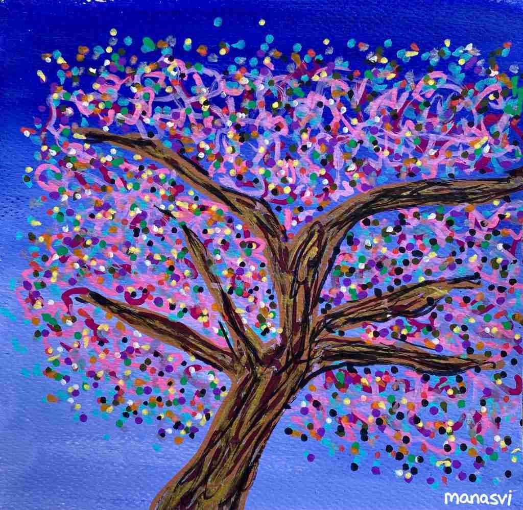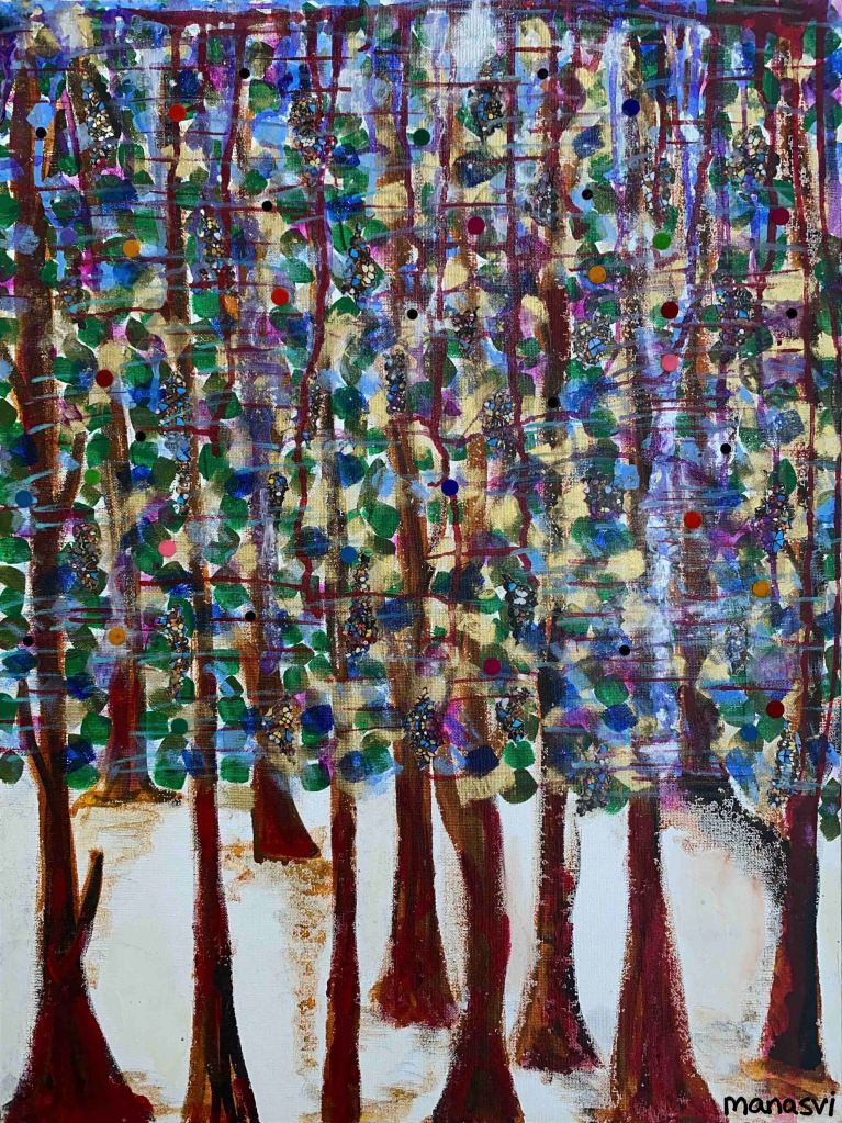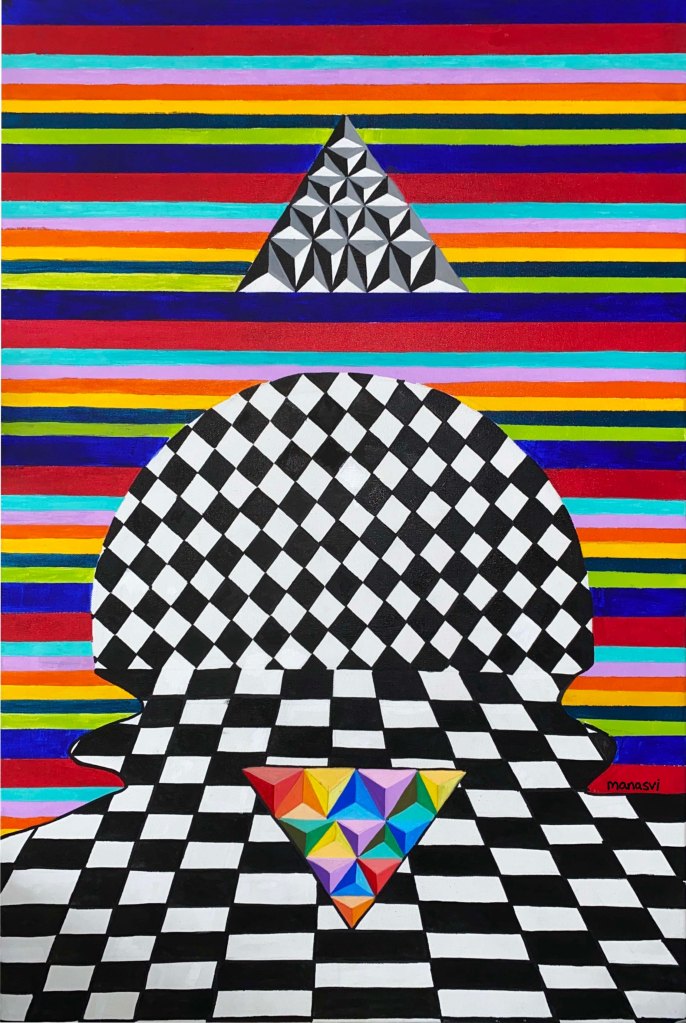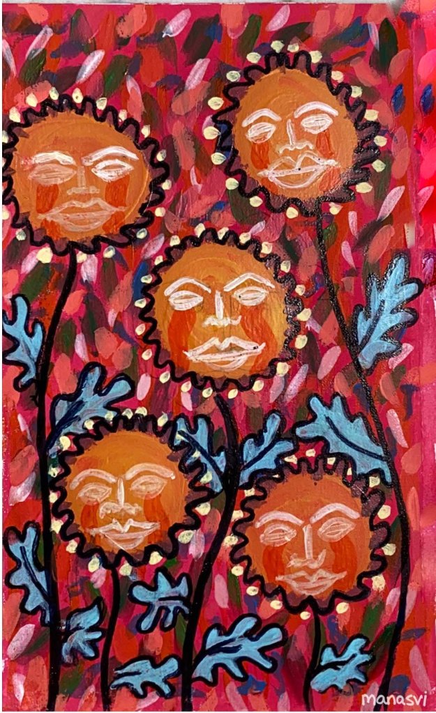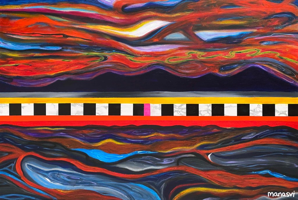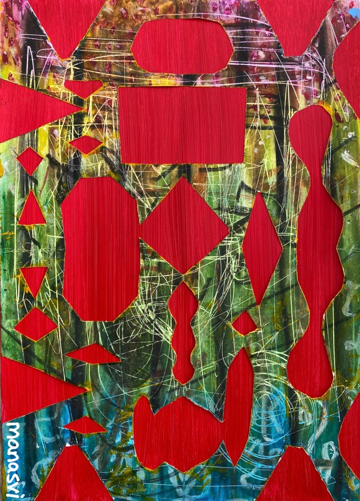 Painting Heera Addition 1.0, mixed media on canvas board, 24 x 20 inches, 2021 Spirit, mixed media on canvas board, 18 x 24 inches, 2021 Spirited Away, acrylic paint on canvas board, 18 x 24 inches, 2021 You Are The Light You Seek, acrylics, oils and posca on cotton paper, 7.8 x 7.8 inches, 2021 The Wave Of The Land, acrylics, posca on canvas board, 34 x 36 inches, 2021 Kalash, acrylics and posca on canvas roll, 12 x 16 inches, 2021 Confetti, acrylics and posca on cotton paper, 7.8 x 7.8 inches, 2021 Sapphire & Amber, Acrylic on ivory paper, 8.5 x 11 inches, 2021 The Call, acrylics, mixed media on cotton paper, 7.8 x 7.8 inches, 2021 The Colour Of Courage, acrylic and oil pastel on cotton paper, 7.8 x 7.8 inches, 2021 The Moment Of Death, acrylic and oil pastel on cotton paper paper, 7.8 x 7.8 inches, 2021 Bharat Mata, mixed media on wood panel, 34 x 36 inches, 2020 Indian Ink, acrylic and ink on canvas board, 24 x 36 inches, 2021 Present Tense, mixed media on wood, 24 x 36 inches, 2021 Ashes To Ashes, Pigment on canvas board, 12 x 12 inches, 2020 The Kiss, mixed media on canvas, 24x 24 inches, 2020 J.K.N.P 1, gouache paint on paper, 8 x 6 inches, 2020 Geometry of Insulation, acrylic on wooden stretched canvas, 24 x 36 inches, 2020 Mirror Mirror, acrylic on wooden stretched canvas, 20 x 24 inches, 2020 Rise and Shine, acrylic on canvas board, 24 x 36 inches, 2020 (SOLD) Tea Kettle, oil and acrylic on premium paper, 11.7 x 16.5 inches, 2020 Volume, mixed media on canvas board, 18 x 24 inches, 2020 Free Will, acrylic and posca on premium paper, 11.8 x 16.5 inches, 2020 Possibility, mixed media on wooden stretched canvas, 34 x 36 inches, 2021 The Only Place A Spirit Can Wonder Is On Earth, acrylics and oils on canvas board, 34 x 36 inches, 2021 Untitled , mixed media on canvas board, 34 x 36 inches, 2021 Faraway Tree, posca pens and colour pencil on cotton paper, 7.8 x 7.8 inches, 2021 Bird’s Eye View, acrylics, posca and oils on canvas roll, 10 x 12 inches Unbroken, acrylics, posca and oils on canvas roll, 10 x 12 inches, 2021 Between Serenity & The Past, acrylics and oils on cotton paper, 7.8 x 7.8 inches, 2021 Sometimes The Sun Gets Sore, acrylics and oils on canvas roll, 12 x 16 inches, 2021 Lost And Found, oil and resin on canvas board, 34 x 36 inches, 2021 Dharti, mixed media on ivory paper, 8.5 x 11 inches, 2021 Child’s Play, acrylic on canvas board, 24 x 36 inches, 2021 Rippling, mixed media on stretched canvas, 34 x 36 inches, 2020 The Embrace, mixed media on marker paper, 11.8 x 16.5 inches, 2021 Indian ‘Culture’, mixed media on wood panel, 24 x 36 inches, 2020 Dust To Dust, pigment and acrylic on canvas board, 20 x 24 inches, 2020 Koi Pond, oils, acrylic and ink on wooden stretched canvas, 24 x 36 inches, 2020(SOLD) J.K.N.P 2, gouache paint on paper, 8 x 6 inches, 2020 Tippy Toe, acrylic and posca on handmade paper, 2020 Delhi Daze, acrylic, metallic beads and posca on stretched wooden canvas, 24 x 24 inches, 2020 Orchids, acrylic and posca on premium paper, 12 x 16.5 inches, 2020 A City Girl, acrylic on wooden stretched canvas, 20 x 24 inches, 2020 Where Is My Sari?, acrylic and posca on wooden stretched canvas, 16 x 24 inches, 2020 Whimsy, acrylic on canvas board, 24 x 24 inches, 2020 Fly On, acrylic and posca on canvas board, 16 x 20 inches, 2020