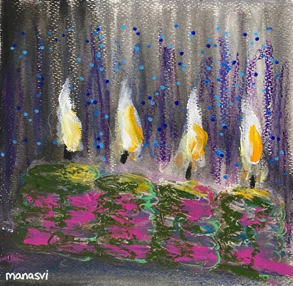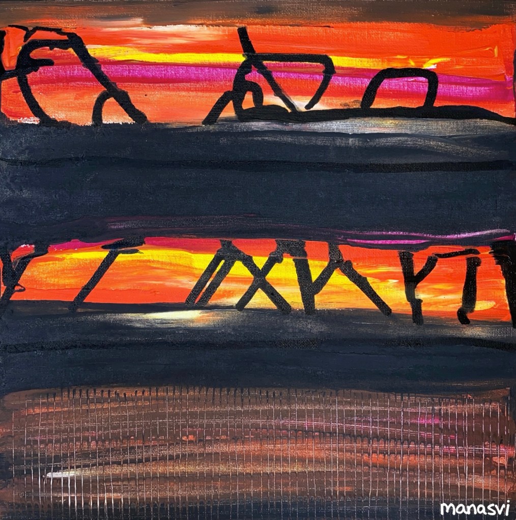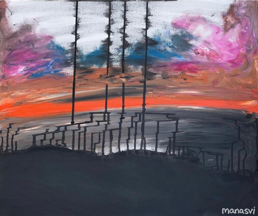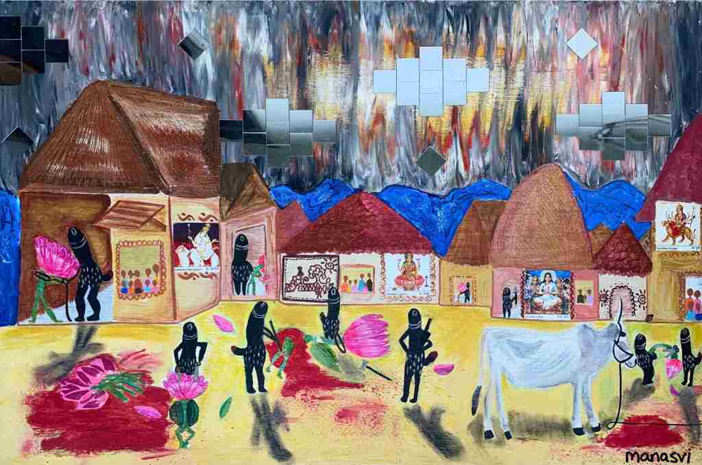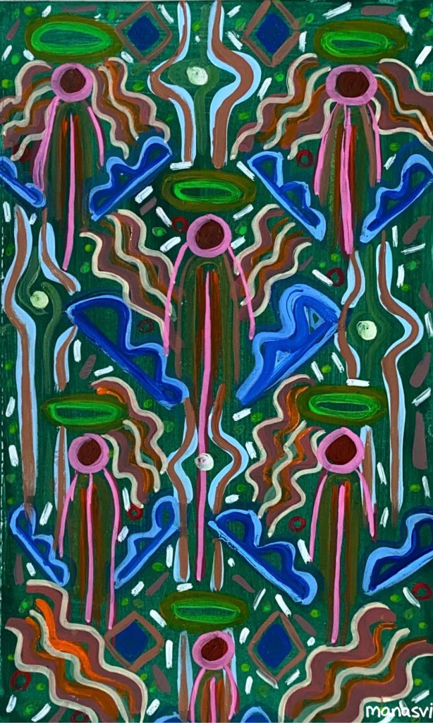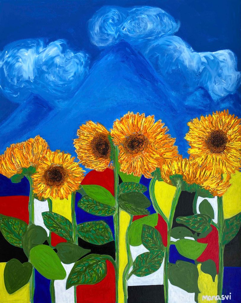 Painting Heera Addition 1.0, mixed media on canvas board, 24 x 20 inches, 2021 Spirit, mixed media on canvas board, 18 x 24 inches, 2021 Spirited Away, acrylic paint on canvas board, 18 x 24 inches, 2021 You Are The Light You Seek, acrylics, oils and posca on cotton paper, 7.8 x 7.8 inches, 2021 The Wave Of The Land, acrylics, posca on canvas board, 34 x 36 inches, 2021 Kalash, acrylics and posca on canvas roll, 12 x 16 inches, 2021 Confetti, acrylics and posca on cotton paper, 7.8 x 7.8 inches, 2021 Sapphire & Amber, Acrylic on ivory paper, 8.5 x 11 inches, 2021 The Call, acrylics, mixed media on cotton paper, 7.8 x 7.8 inches, 2021 The Colour Of Courage, acrylic and oil pastel on cotton paper, 7.8 x 7.8 inches, 2021 The Moment Of Death, acrylic and oil pastel on cotton paper paper, 7.8 x 7.8 inches, 2021 Bharat Mata, mixed media on wood panel, 34 x 36 inches, 2020 Indian Ink, acrylic and ink on canvas board, 24 x 36 inches, 2021 Present Tense, mixed media on wood, 24 x 36 inches, 2021 Ashes To Ashes, Pigment on canvas board, 12 x 12 inches, 2020 The Kiss, mixed media on canvas, 24x 24 inches, 2020 J.K.N.P 1, gouache paint on paper, 8 x 6 inches, 2020 Geometry of Insulation, acrylic on wooden stretched canvas, 24 x 36 inches, 2020 Mirror Mirror, acrylic on wooden stretched canvas, 20 x 24 inches, 2020 Rise and Shine, acrylic on canvas board, 24 x 36 inches, 2020 (SOLD) Tea Kettle, oil and acrylic on premium paper, 11.7 x 16.5 inches, 2020 Volume, mixed media on canvas board, 18 x 24 inches, 2020 Free Will, acrylic and posca on premium paper, 11.8 x 16.5 inches, 2020 Possibility, mixed media on wooden stretched canvas, 34 x 36 inches, 2021 The Only Place A Spirit Can Wonder Is On Earth, acrylics and oils on canvas board, 34 x 36 inches, 2021 Untitled , mixed media on canvas board, 34 x 36 inches, 2021 Faraway Tree, posca pens and colour pencil on cotton paper, 7.8 x 7.8 inches, 2021 Bird’s Eye View, acrylics, posca and oils on canvas roll, 10 x 12 inches Unbroken, acrylics, posca and oils on canvas roll, 10 x 12 inches, 2021 Between Serenity & The Past, acrylics and oils on cotton paper, 7.8 x 7.8 inches, 2021 Sometimes The Sun Gets Sore, acrylics and oils on canvas roll, 12 x 16 inches, 2021 Lost And Found, oil and resin on canvas board, 34 x 36 inches, 2021 Dharti, mixed media on ivory paper, 8.5 x 11 inches, 2021 Child’s Play, acrylic on canvas board, 24 x 36 inches, 2021 Rippling, mixed media on stretched canvas, 34 x 36 inches, 2020 The Embrace, mixed media on marker paper, 11.8 x 16.5 inches, 2021 Indian ‘Culture’, mixed media on wood panel, 24 x 36 inches, 2020 Dust To Dust, pigment and acrylic on canvas board, 20 x 24 inches, 2020 Koi Pond, oils, acrylic and ink on wooden stretched canvas, 24 x 36 inches, 2020(SOLD) J.K.N.P 2, gouache paint on paper, 8 x 6 inches, 2020 Tippy Toe, acrylic and posca on handmade paper, 2020 Delhi Daze, acrylic, metallic beads and posca on stretched wooden canvas, 24 x 24 inches, 2020 Orchids, acrylic and posca on premium paper, 12 x 16.5 inches, 2020 A City Girl, acrylic on wooden stretched canvas, 20 x 24 inches, 2020 Where Is My Sari?, acrylic and posca on wooden stretched canvas, 16 x 24 inches, 2020 Whimsy, acrylic on canvas board, 24 x 24 inches, 2020 Fly On, acrylic and posca on canvas board, 16 x 20 inches, 2020